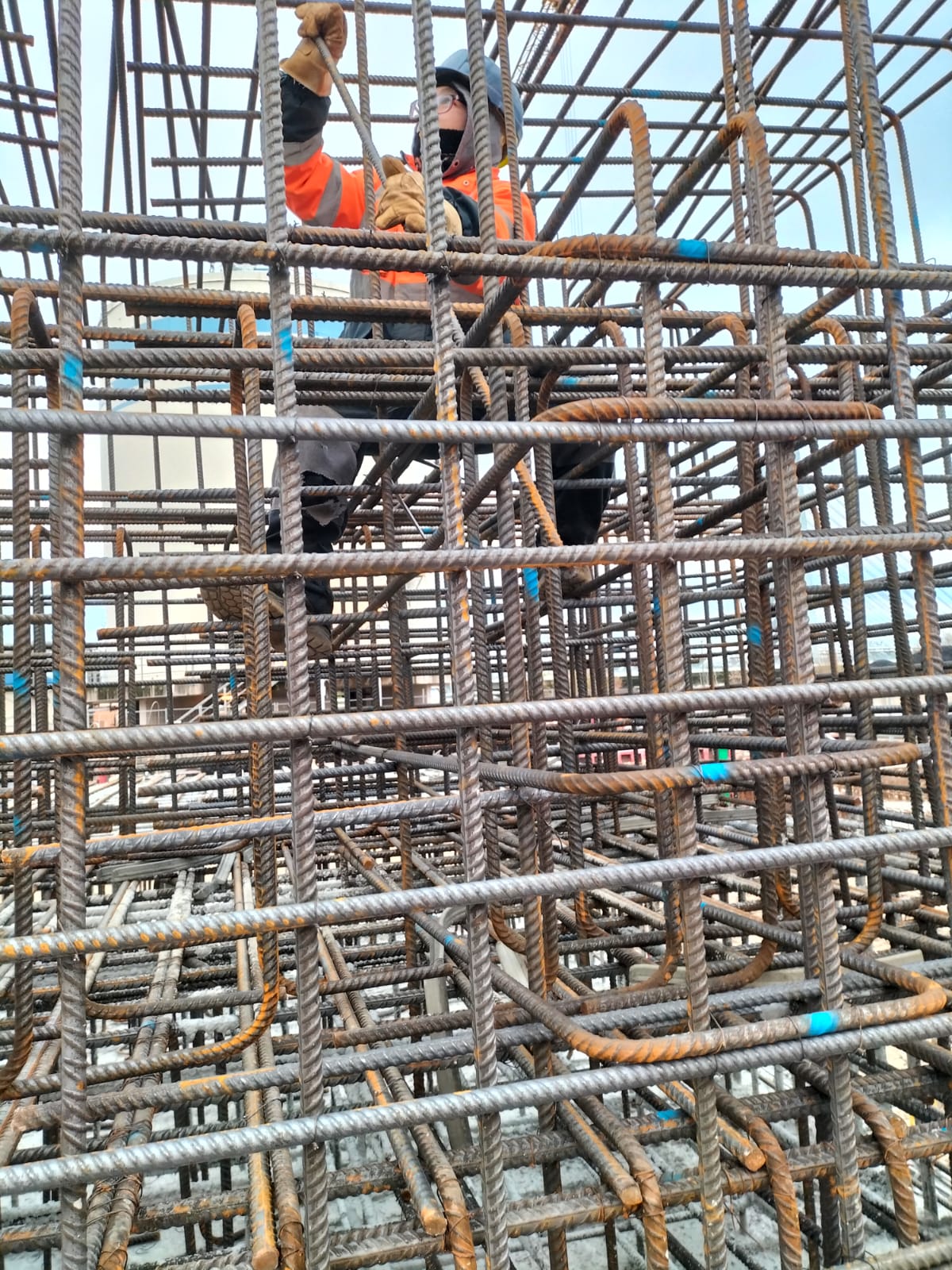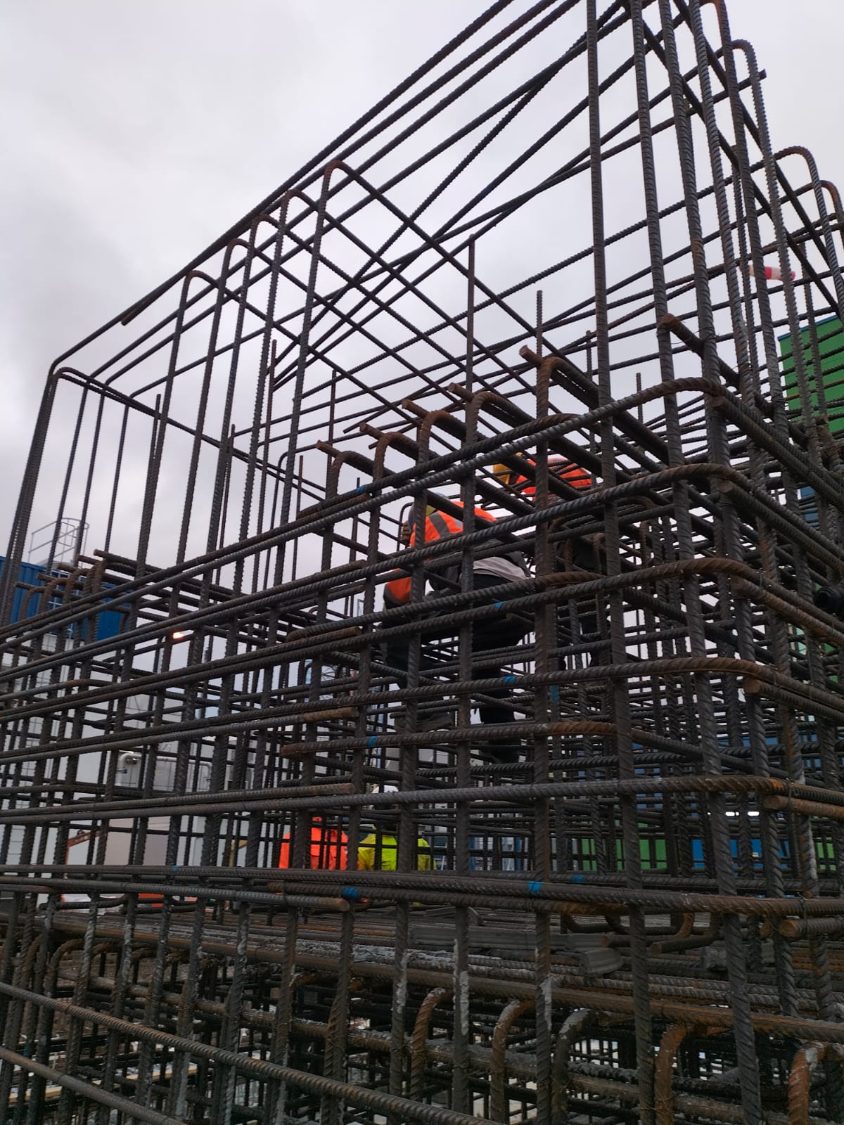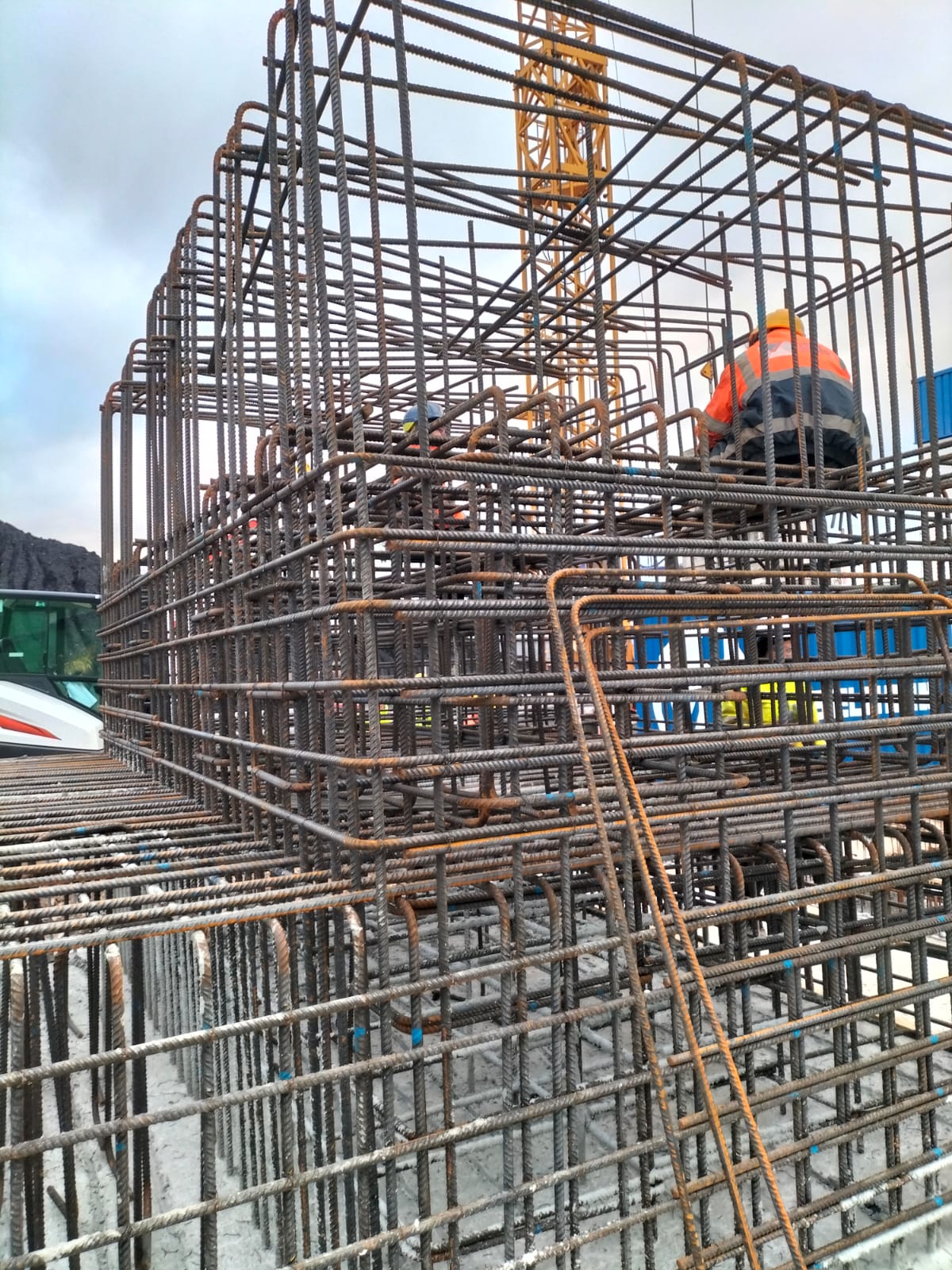 Maschinenfundament: Größe ca. 15 x 12 m, Höhe über 4,50 m, insgesamt ca. 100 t Betonstahl